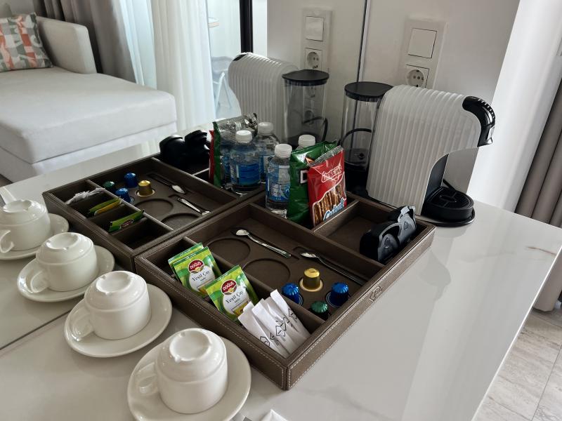 - Мини-бар (обычно ежедневно пополняется: вода, безалкогольные напитки; ассортимент зависит от категории и сезона).